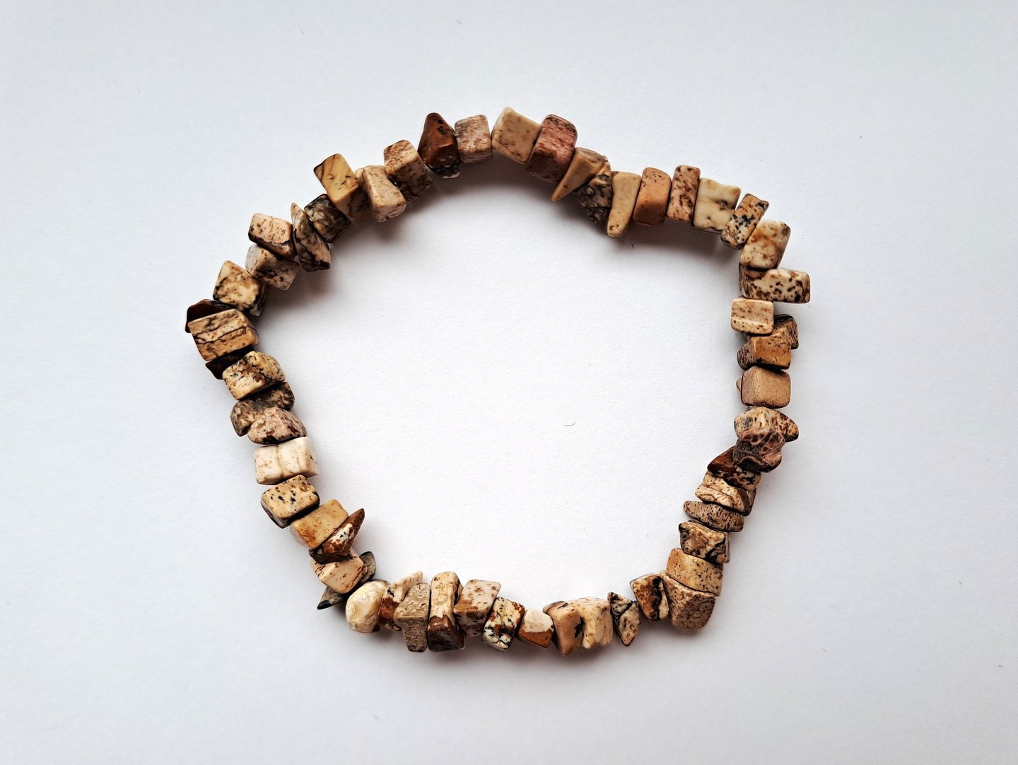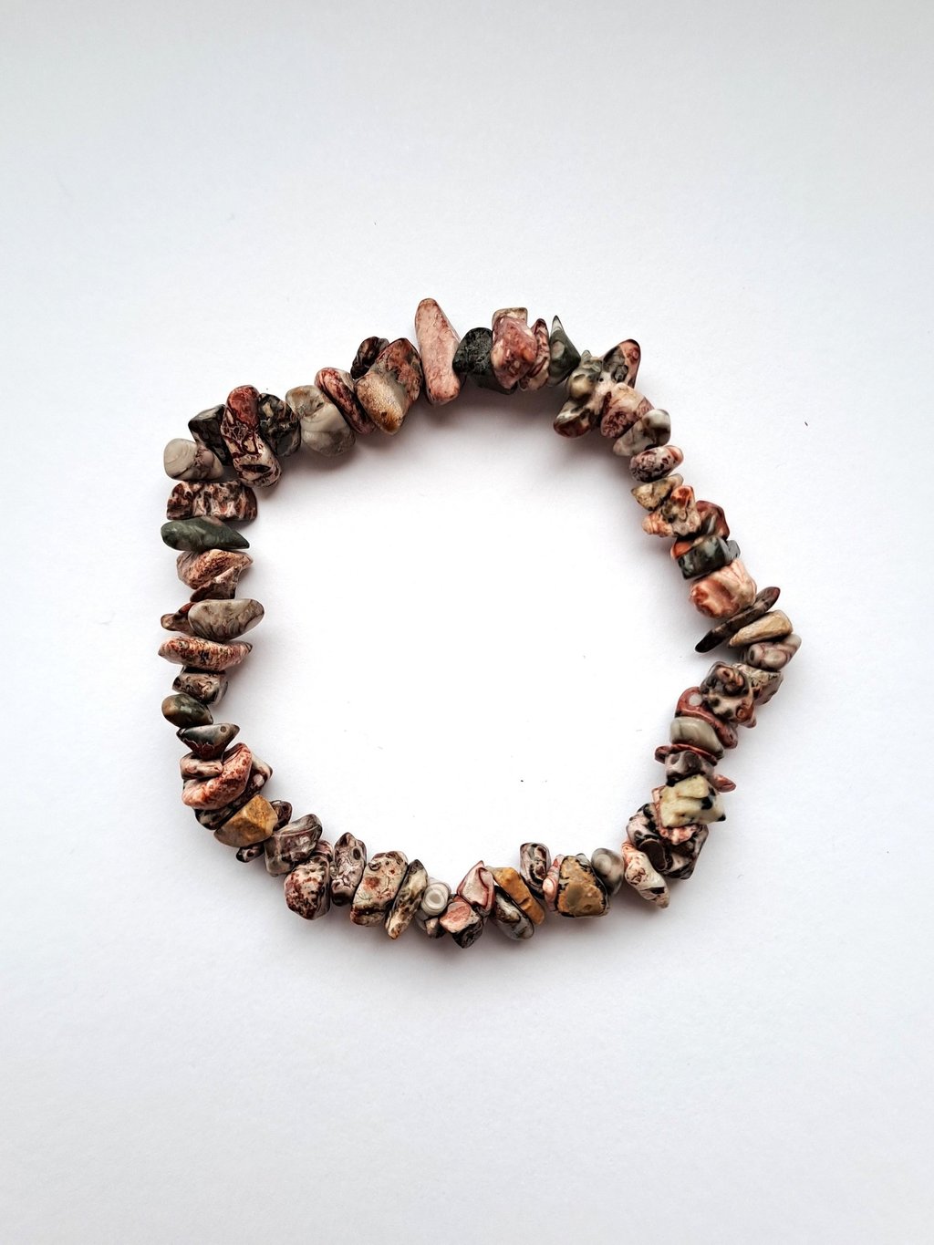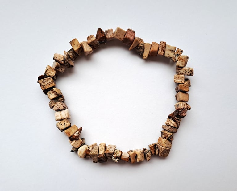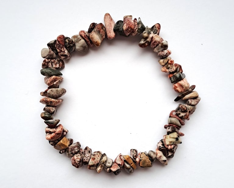 Náramky z přírodních zlomků kamenů různých druhů a kombinací.